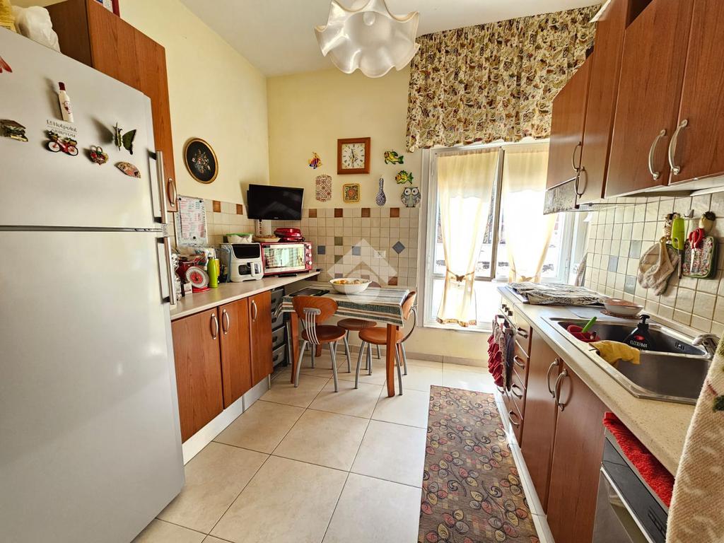 La soluazione è cosi disposta: soggiorno a vista, cucina abitabile, camera da letto, cameretta e bagno. Si presenta in ottimo stato con pavimentazione unica in gres porcellanato, infissi in ferro, porte interne in legno e porta d'ingresso blindata. Impianto idrico ed elettrico in ottimo stato. La soluzione presenta climatizzaori in ogni ambiente.