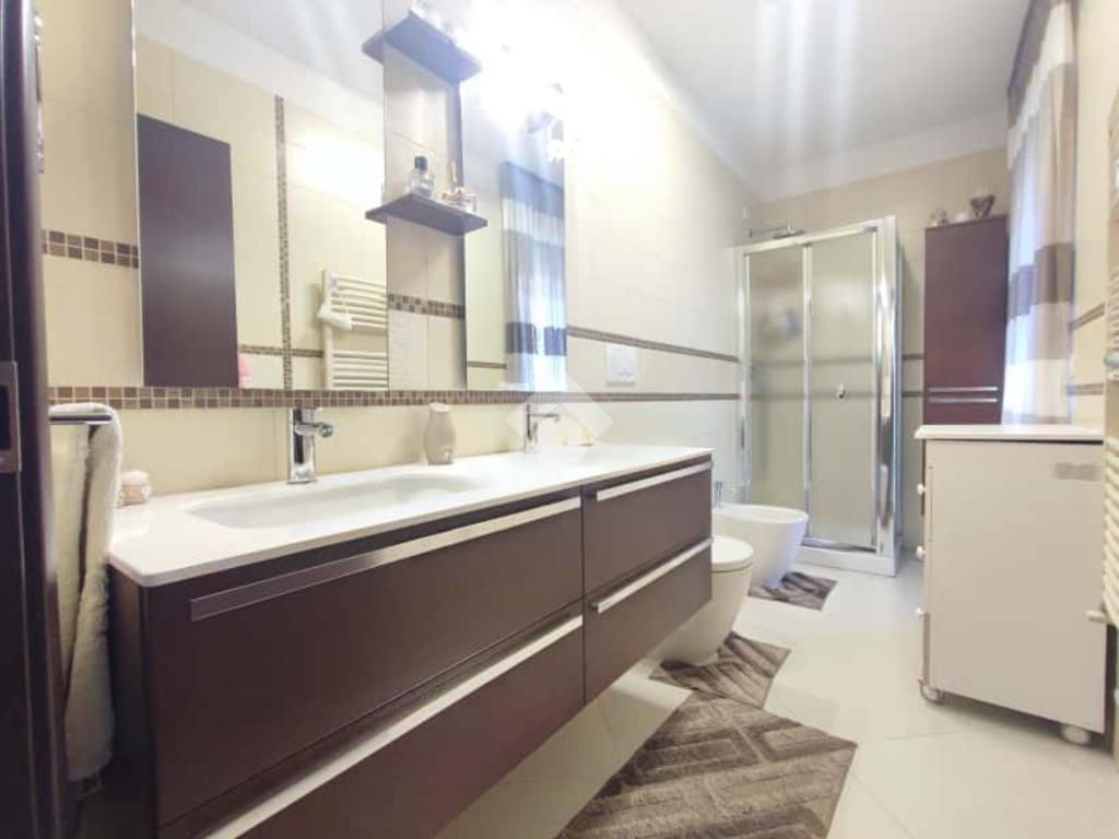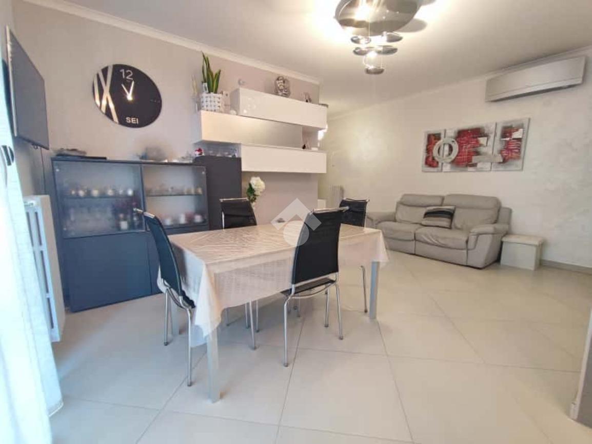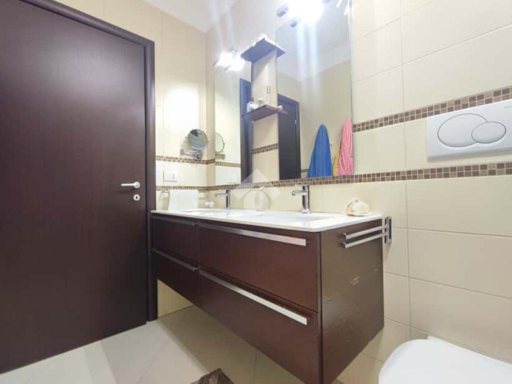 Si presenta in ottimo stato con pavimentazione unica in gres porcellanato, infissi in legno con vetrocamera, zanzariere, tapparelle elettriche, tende da sole motorizzate con sensore vento, climatizzatori in tutti gli ambienti, porte interne in legno a scrigno e porta d'ingresso blindata. Predisposizione antifurto.