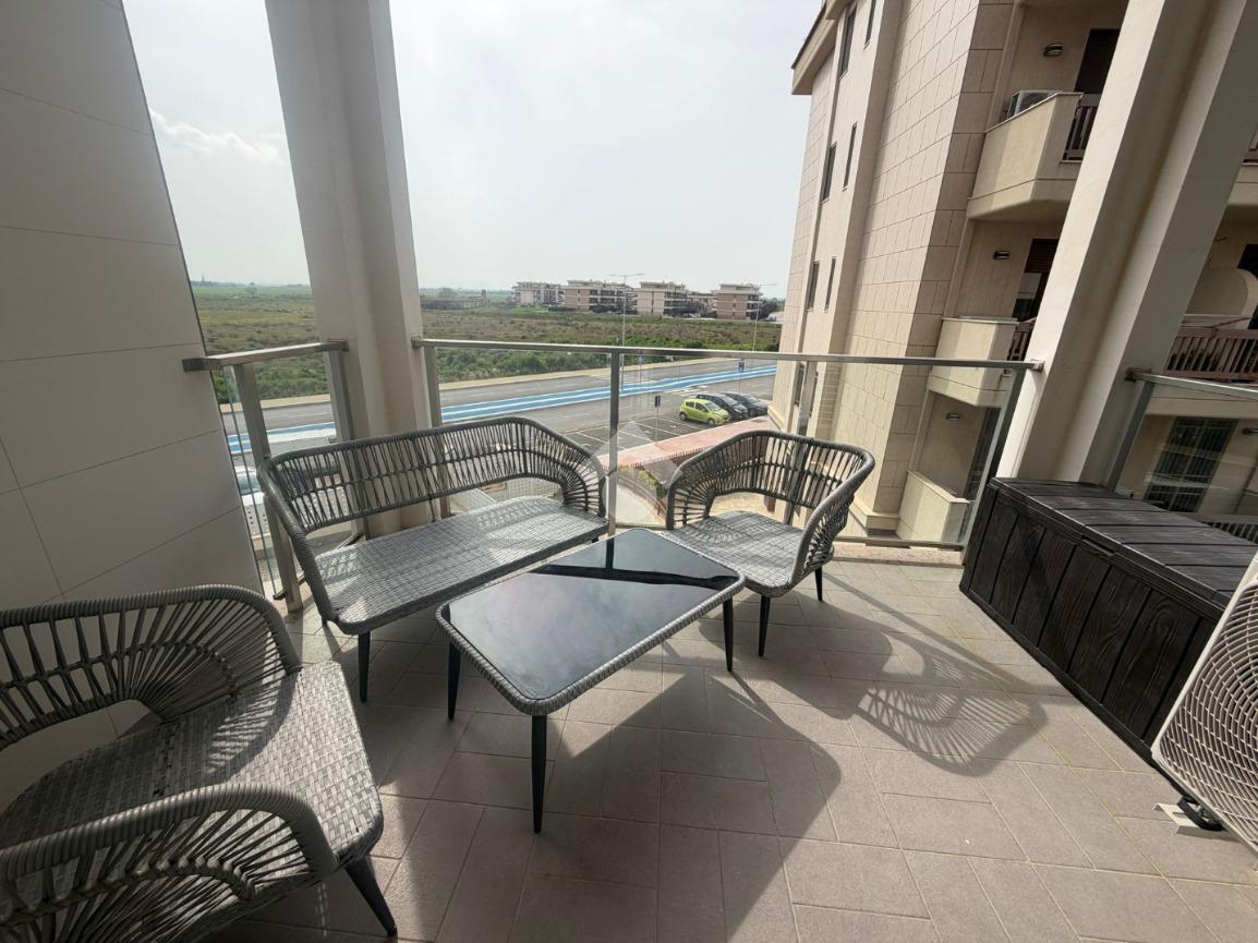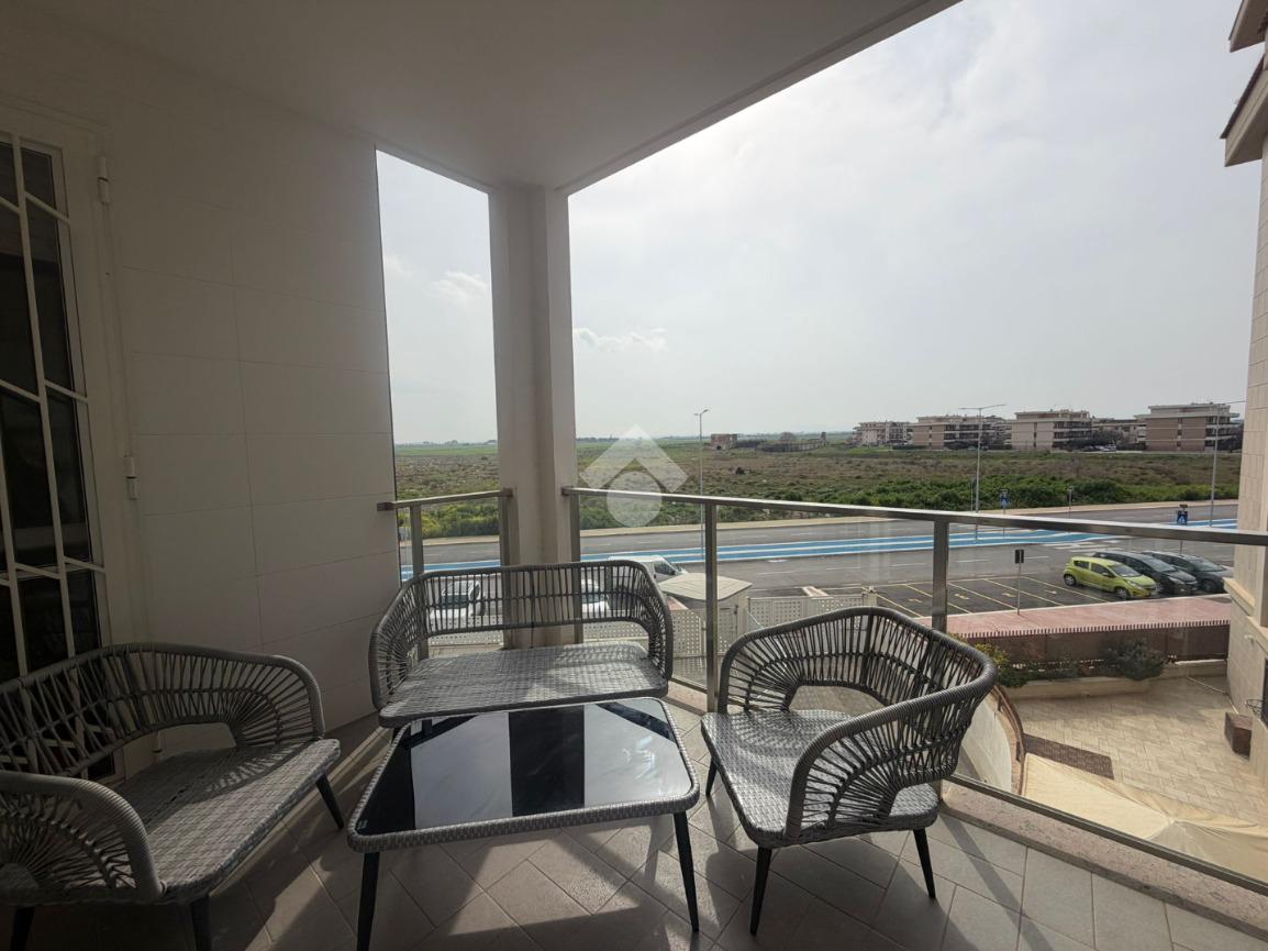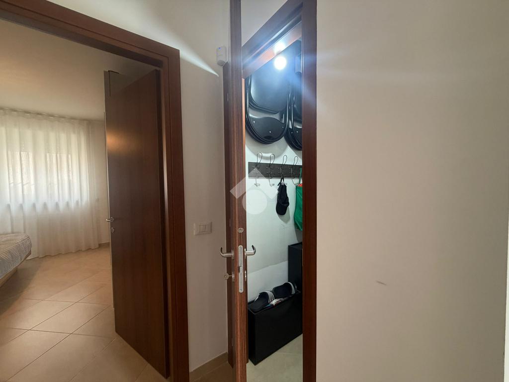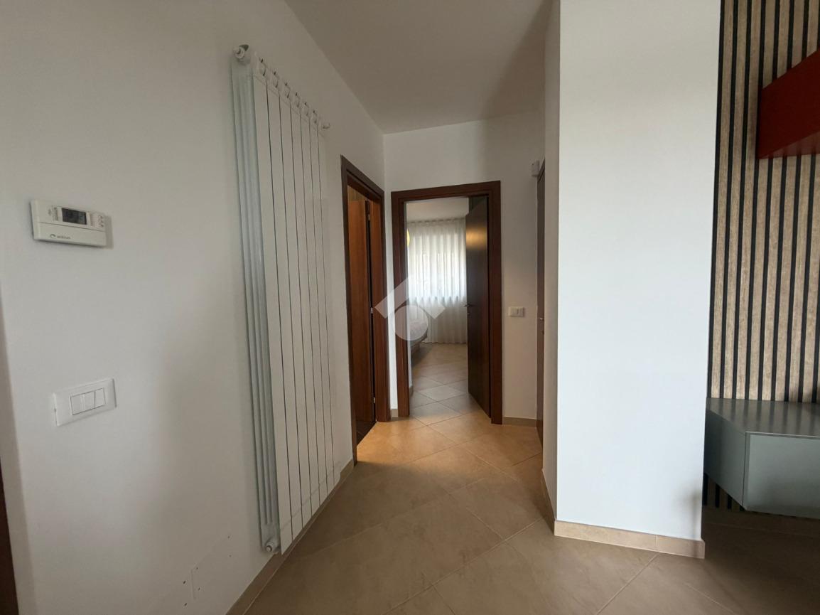 Si presenta in ottimo stato con pavimentazione unica in gres, infissi in pvc effetto legno con sistema vasistas, tapparelle elettriche , inferriate e zanzariere, porte interne in legno e porta d'ingresso blindata. Presenza di impianto d'allarme e climatizzazione nella zona giorno.