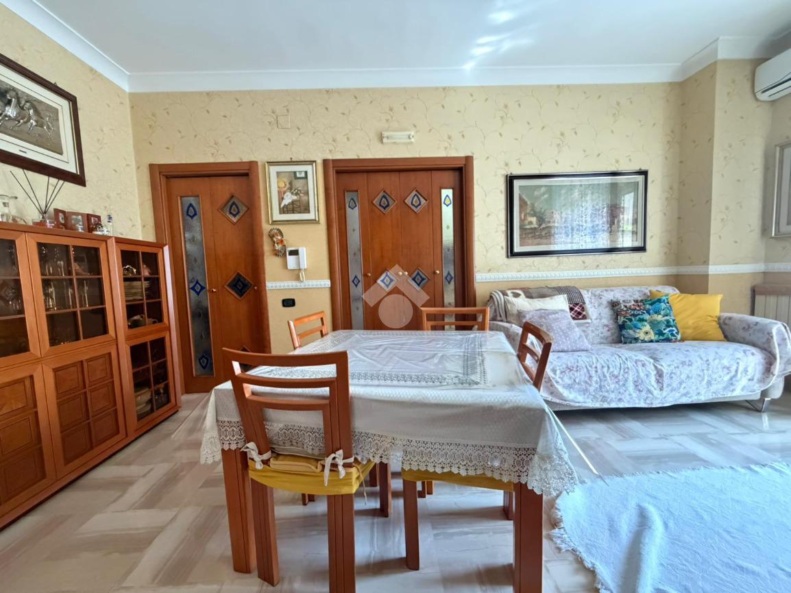 Si presenta in buono stato con pavimentazione unica marmo, porte interne in legno, infissi in alluminio doppio vetrocamera e porta d'ingresso blindata. Box di 32 mq incluso nel prezzo.