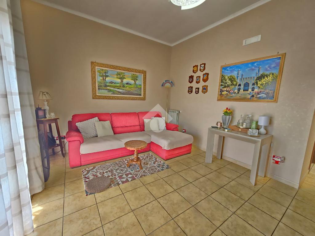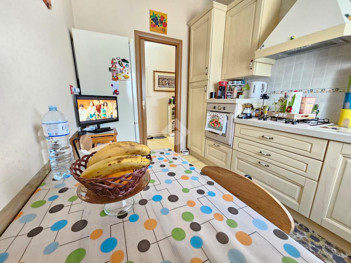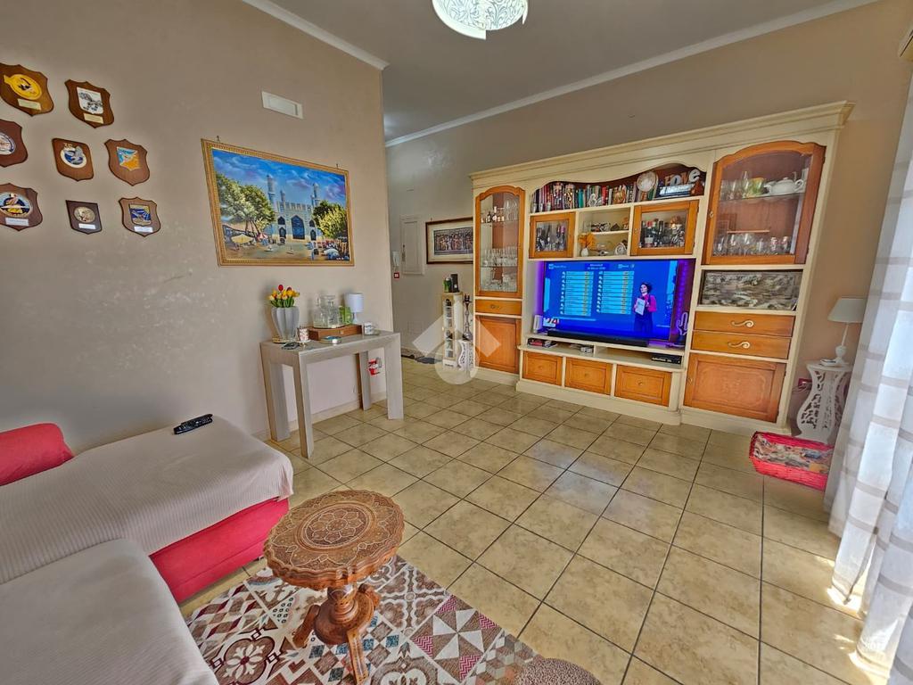 L'immobile è composto da soggiorno, cucina abitabile , camera da letto, cameretta, bagno con lavanderia. Si presenta in ottimo stato con pavimentazione unica in gres, infissi in alluminio effetto legno con doppio vetrocamera , zanzariere, tende da sole , porta d'ingresso blindata, climatizzazione nella zona giorno .
